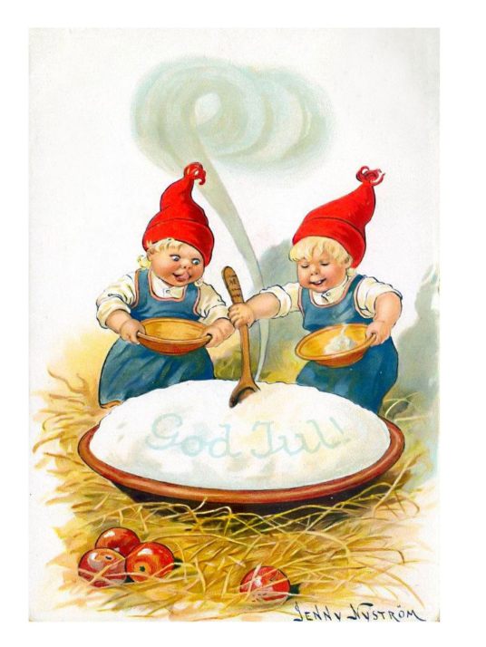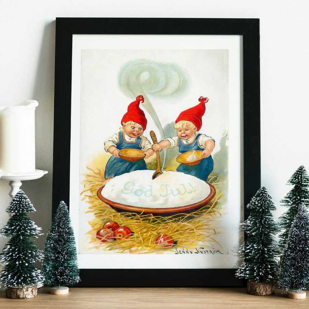 Smånisser spiser grøt - Retro juleplakat - Jenny Nystrøm