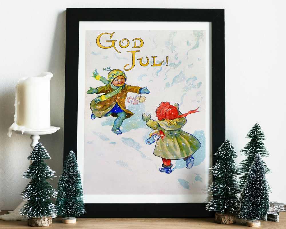 To barn god jul - Retro juleplakat - Jenny Nystrøm