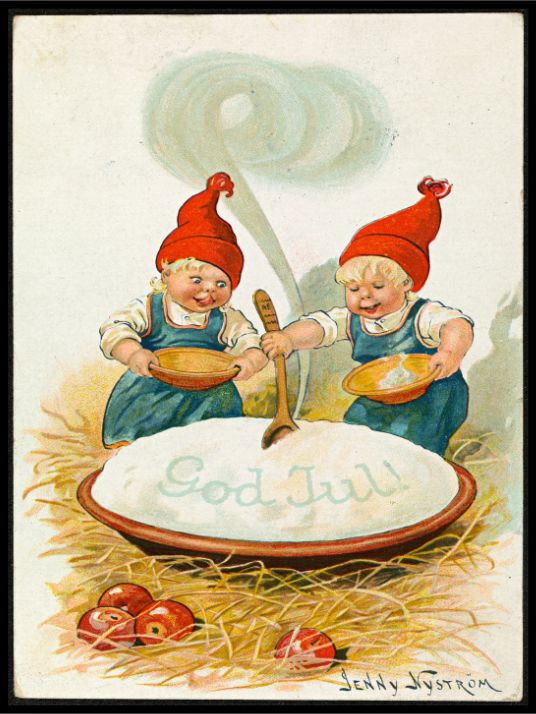 En klassiker av et julemotiv som er laget av den svenske kunstneren Jenny Nystrøm. Hun er av mange regnet som "moren av julekort" i Norden og du kjenner nok igjen motivene hennes.