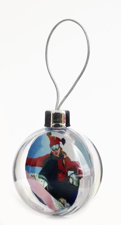 Vår mest solgte julekule! Flott julekule som kan henges på juletreet eller andre steder som pynt. Du kan sette inn ditt eget bilde, format 7,5x7,5cm. Leveres i gjennomsiktig acryl.