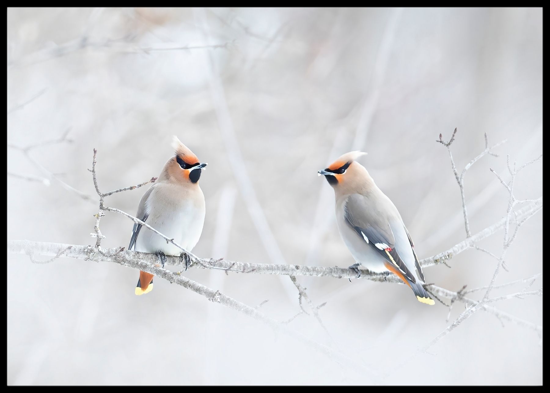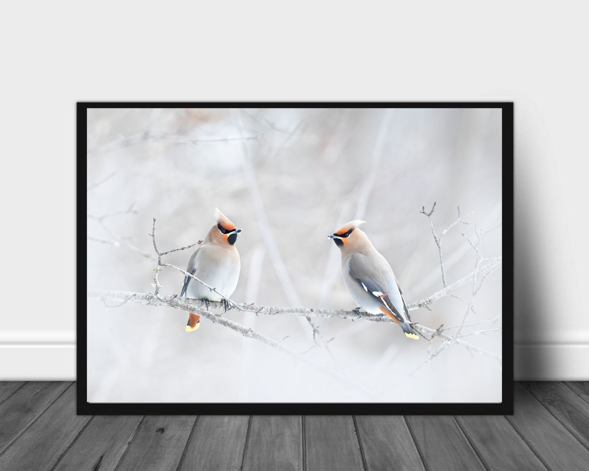 Plakat av to flotte sidensvanser som skaper julestemning.