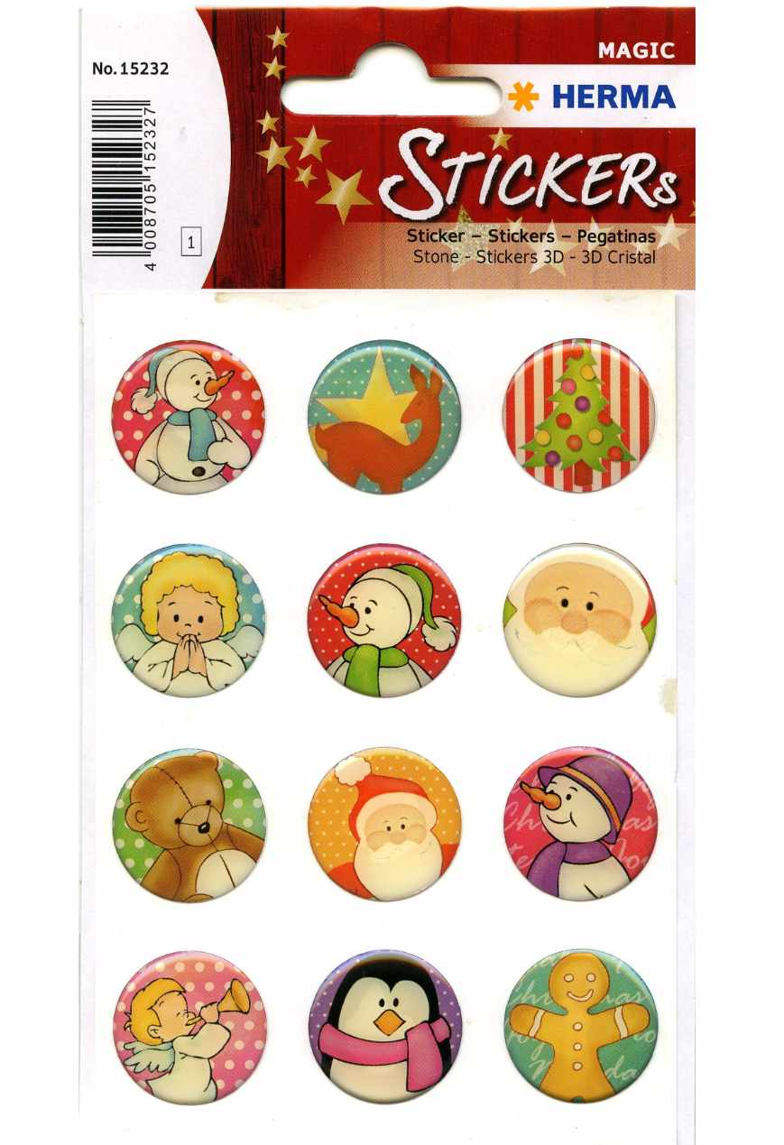 To brett med klistremerker av runde julemotiver. Flott til å dekorere pakker, julekort og merkelapper med.