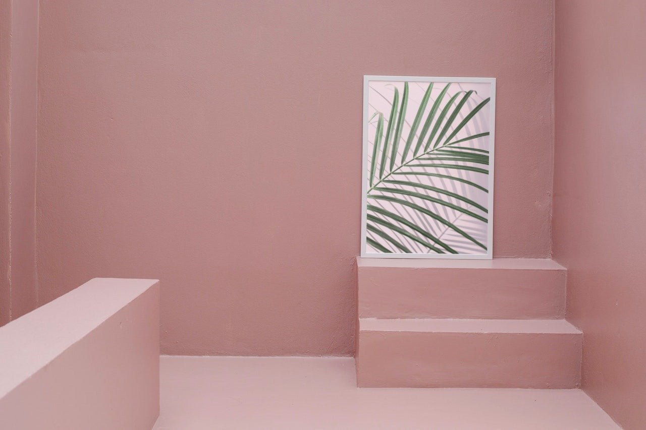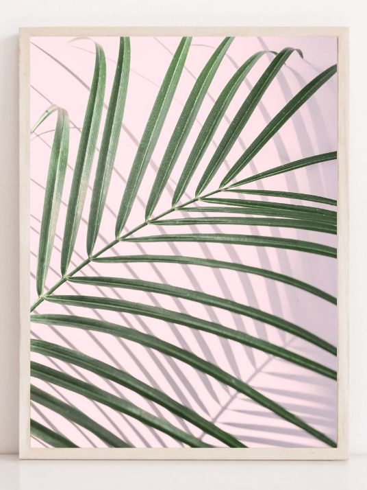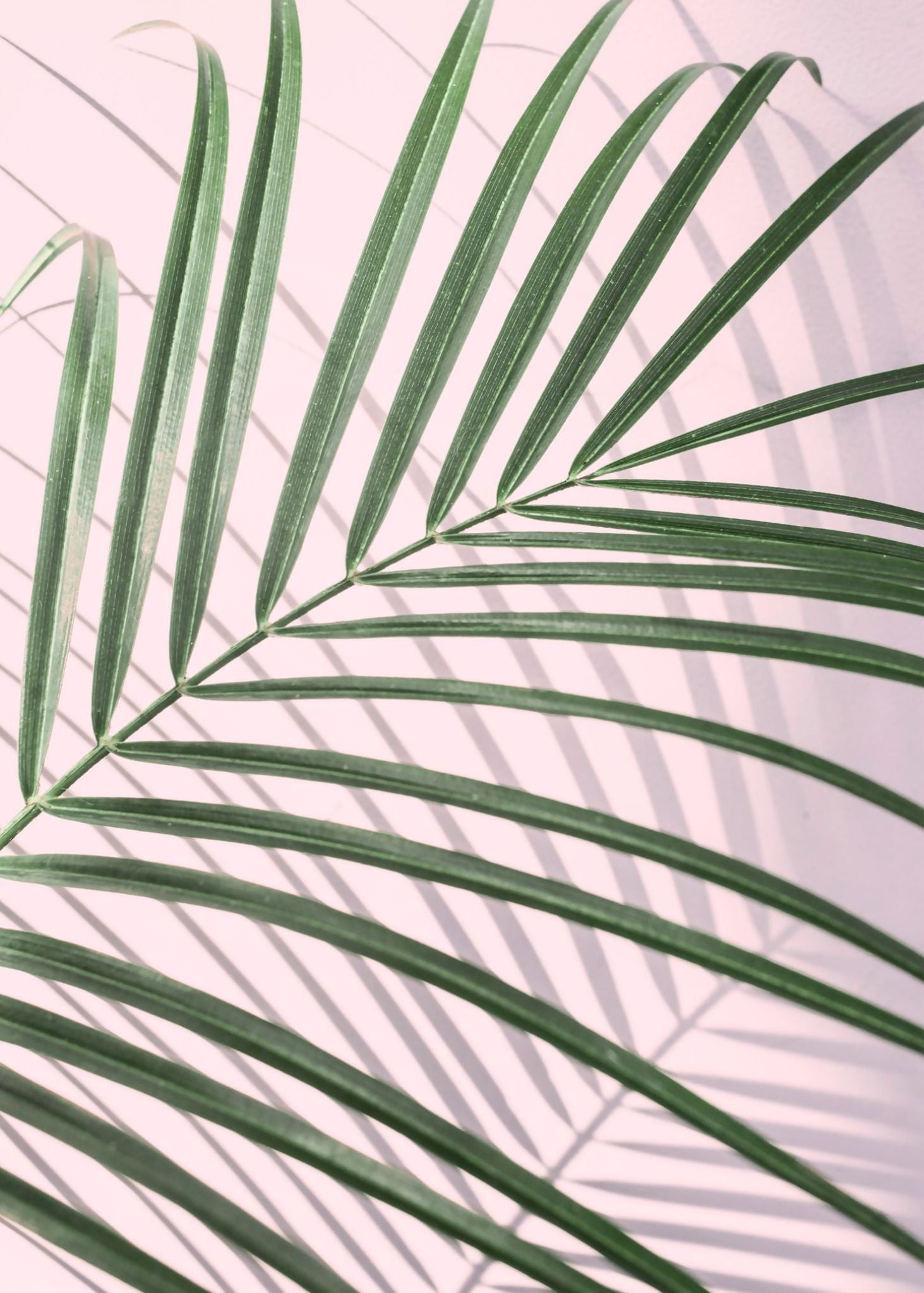 Plakat av den kjente engelske fotografen Kathrin Pienaar - Blader mot rosa bakgrunn