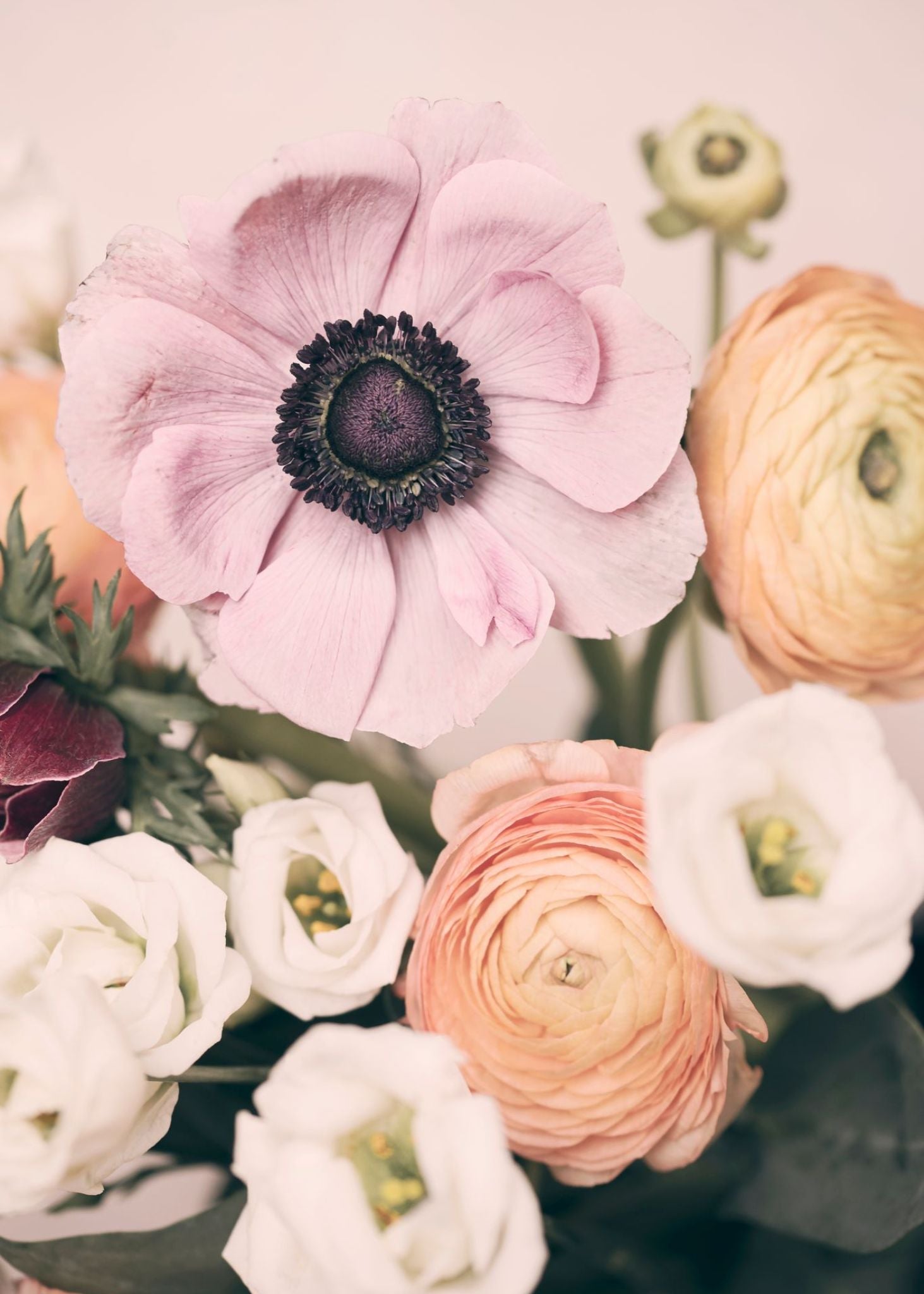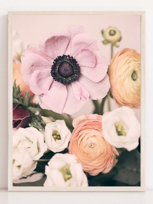 Plakat av den kjente engelske fotografen Kathrin Pienaar - Blomsteroppsett i pastell