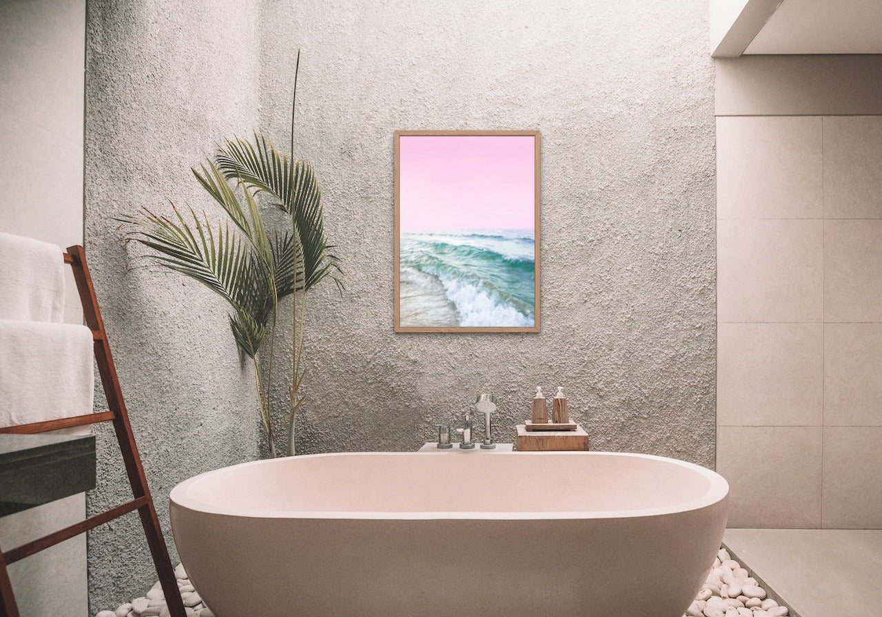 Plakat av den kjente engelske fotografen Kathrin Pienaar - Bølger mot en rosa himmel