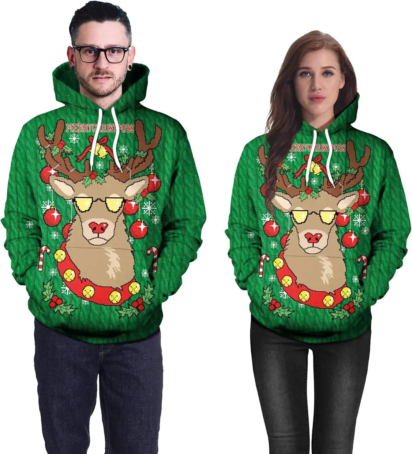 Denne hettegenseren er laget i 100% polyester, som gir en glatt og behagelig følelse mot huden. Ideelle for julebord, julefrokoster, kontordager i desember eller når du vil ha et morsomt og stilfullt plagg til årets julebilder.