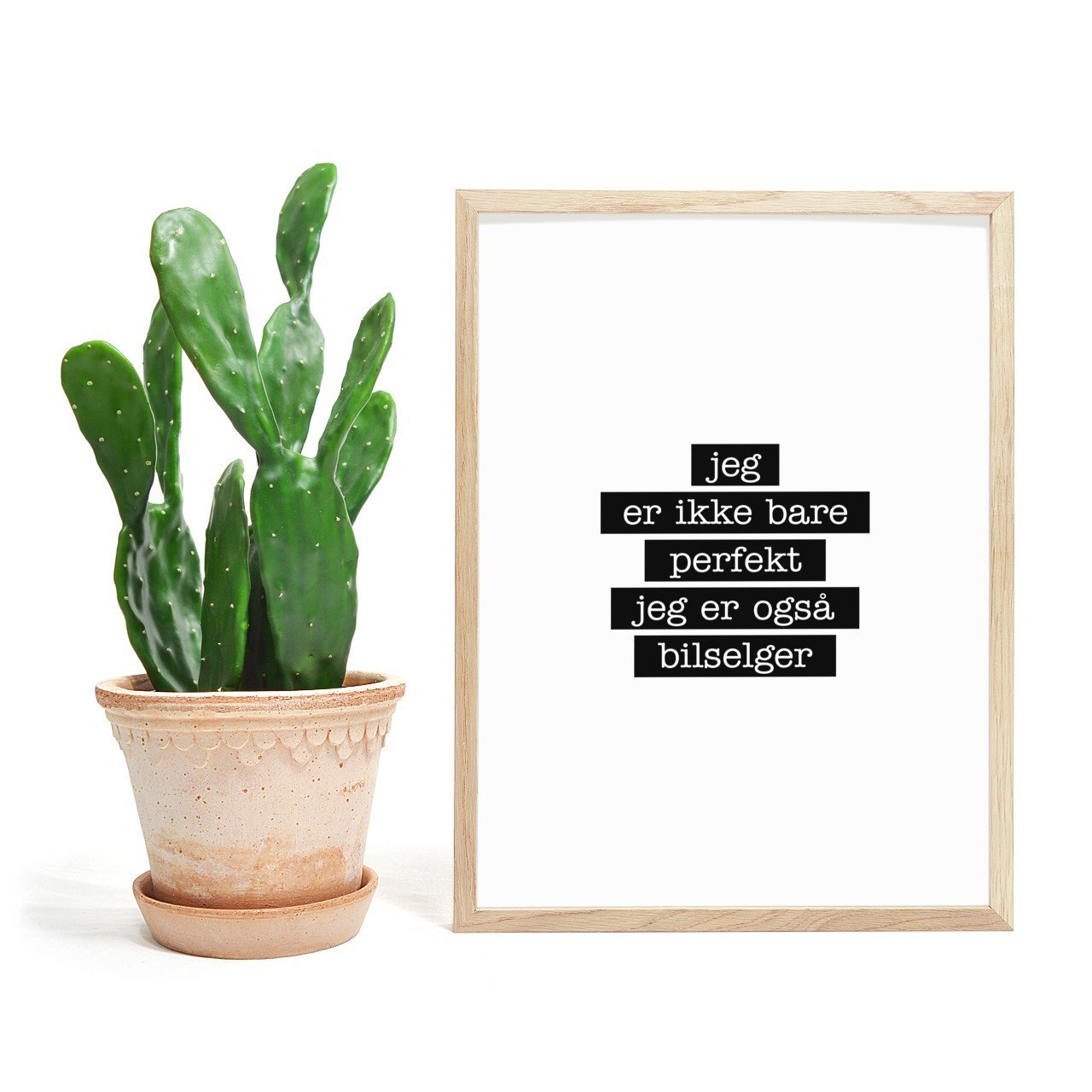 Morsom plakat med teksten: Jeg er ikke bare perfekt jeg er også BILSELGER :)