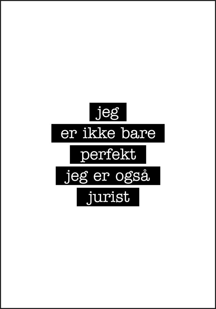 Plakat med teksten: Jeg er ikke bare perfekt jeg er også JURIST :)