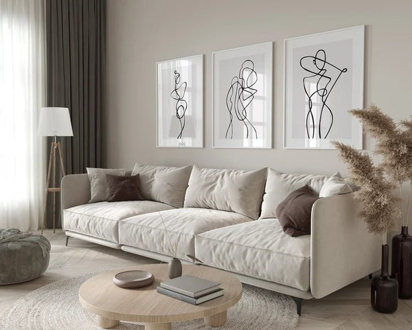 Et nydelig bildesett som er sammensatt av et utvalg motiver fra woman linjekunst- kategorien.  Plakatene er håndplukket fordi de skaper et unikt uttrykk sammen. Du får med med alle tre bildene som vist på produktbildene. På bildet er plakatene rammet inn i ramme med passpartout.