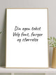 Om du ønsker kan du også skrive din egen tekstlinje som kommer på bunnen av plakaten. Det kan for eksempel være navnene på foreldre og barn. Fødselsdato på barnet eller annet du måtte ønske. Det er valgfritt om du ønsker tekst på plakaten, om du ikke ønsker det skriver du enkelt og greit ikke inn noe i tekstfeltet.