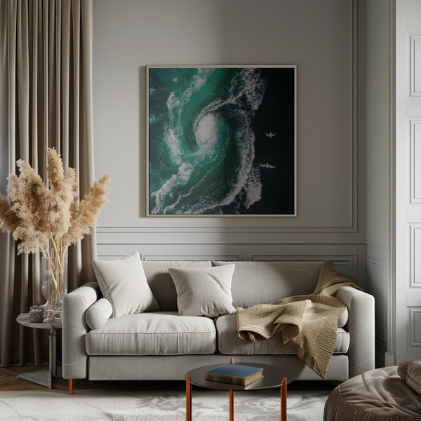 - Etter printing spennes lerretsduken på en kraftig blindramme. For de fleste formatene bruker vi en 40mm tykk ramme, slik at det oppnås en flott dybde-effekt når rammen henges på veggen. Deretter monterer vi på oppheng med stålvaier og kunstverket ditt kan henges rett på vegg.
