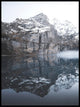 Plakat med nydelig fjellmotiv. Gir et avslappende inntrykk. Legg merke til detaljene i bildet, med blant annet tåke og refleksjon av fjellet i vannet.