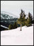 Fin plakat med motiv av snødekt bakke med grønne trær.