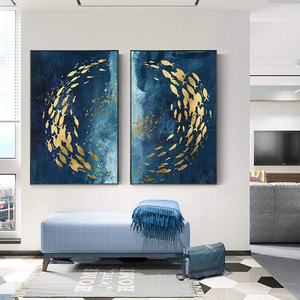Bildesett fra vår populære serie "Luxury". Nydelige fargetoner som er preget av blåfarge gulldetaljer. Disse motivene selges som sett på 2 og kan enten kjøpes som plakat eller lerret.