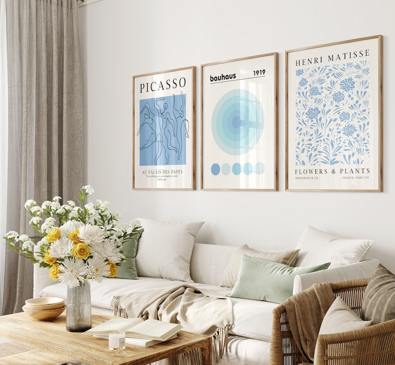 Oppdag skjønnheten og elegansen av Bauhaus-plakater, nå tilgjengelig i beroligende lyseblå nyanser som vil transformere ethvert rom med sin minimalistiske sjarm og tidløse design.
