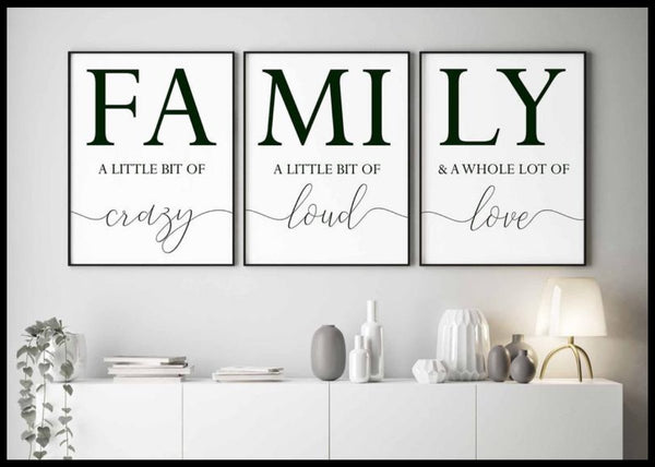 Du mottar da en fiks ferdig pakke med 3 stk familieplakater som kan henges rett på veggen! :)