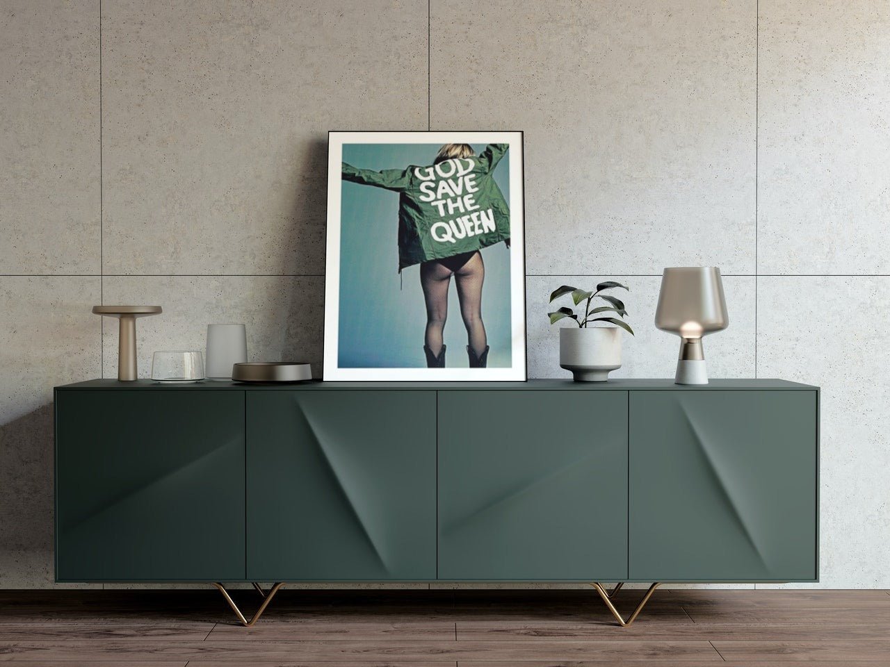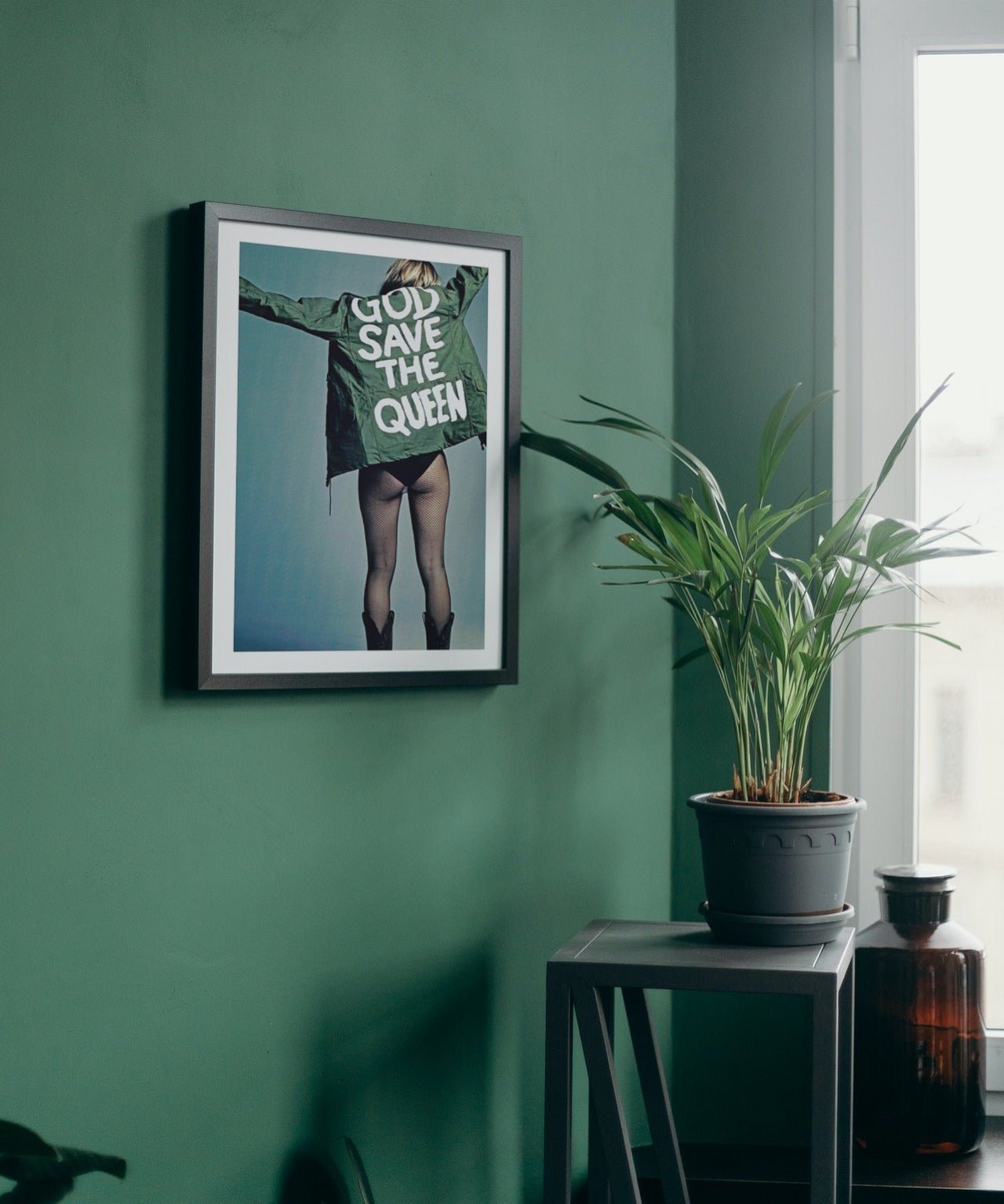 Plakaten er laget med en hvit kant rundt selve motivet som et passepartout.