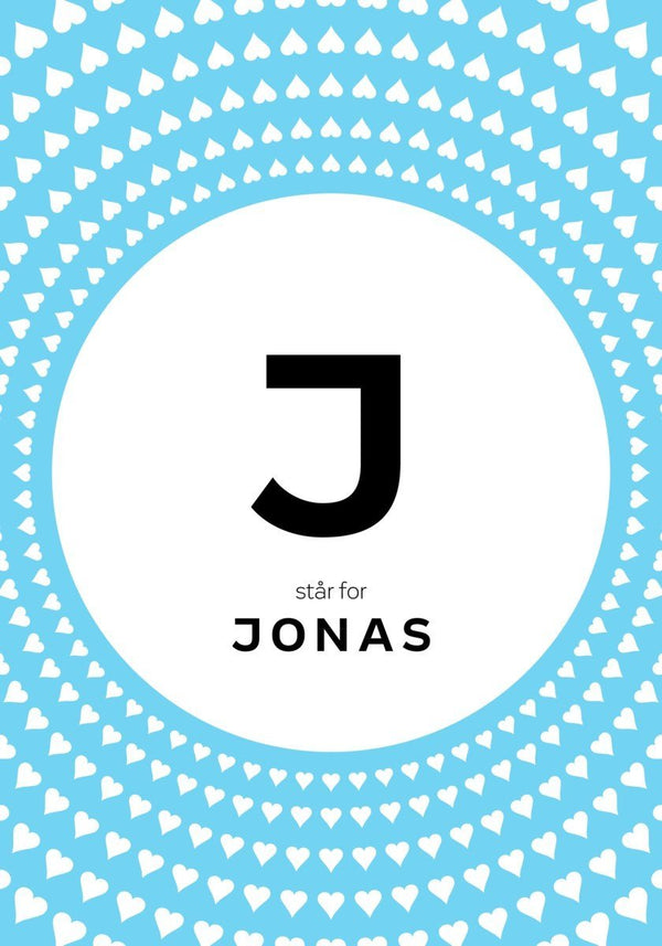 Søt barneplakat med hjerter og eget navn og bokstav. Husk å opplyse om hvilket NAVN som skal stå på plakaten i tekstboksen.