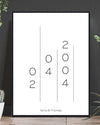 Datoplakat med stilrent design. Du velger selv navn og dato på plakaten. Skriv inn navnet til deg selv og din kjære og velg hvilke dato du vil ha på plakaten. Det kan for eksempel være dato for når dere ble sammen, bryllupsdato eller en annen dato som betyr noe spesielt for dere.