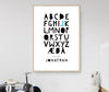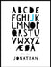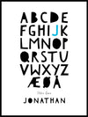 Skreddersy din egen personlige ABC-poster til barnerommet. Du velger navnet som skal stå på plakaten.