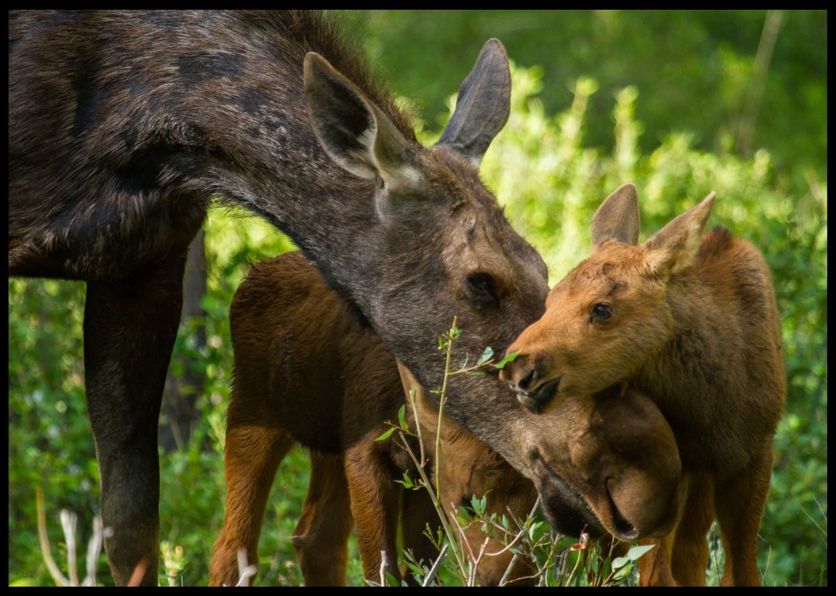 Nydelig bilde av elgmamma med tvillingkalver