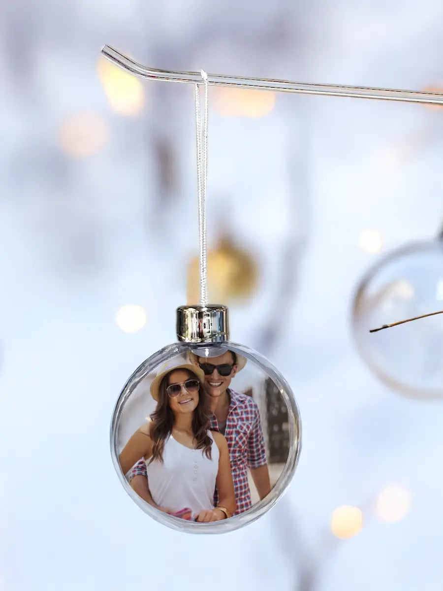 Last opp ditt eget favorittbilde, så setter vi det inn i en vakker julekule som vil lyse opp treet med minner. Enten det er et bilde av familien, kjæledyret eller et spesielt øyeblikk, blir denne julekulen et fantastisk tilskudd til julepynten.