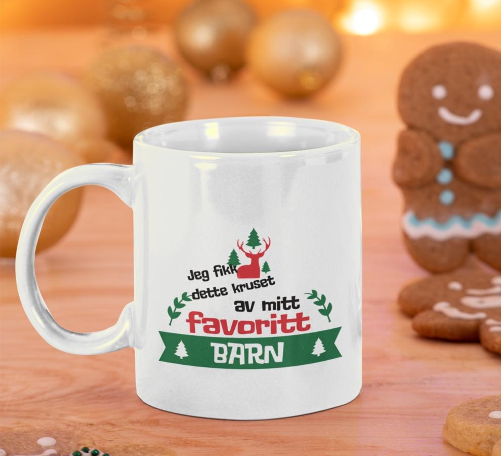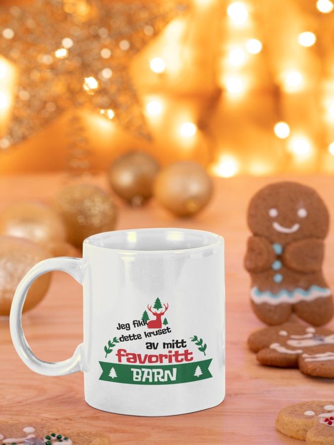 Kruset kommer med et flott juledesign. Når du bestiller kan du velge farge på innsiden av kruset, vi anbefaler rød innside på alle våre julekopper.