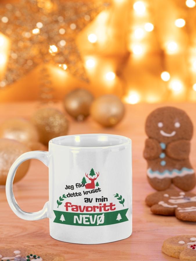 Kruset kommer med et flott juledesign. Når du bestiller kan du velge farge på innsiden av kruset, vi anbefaler rød innside på alle våre julekopper.