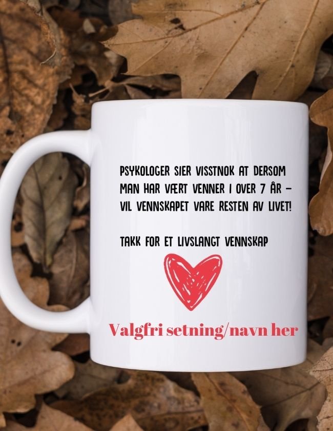 En koselig gave til vennen din - skriv inn navnene som skal trykkes på koppen!