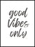 Plakat med teksten "Good Vibes Only". Denne plakaten passer ypperlig som et tekstinnslag på en bildevegg.