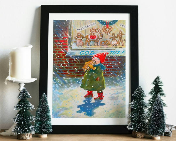 En klassiker av et julemotiv som er laget av den svenske kunstneren Jenny Nystrøm. Hun er av mange regnet som "moren av julekort" i Norden og du kjenner nok igjen motivene hennes.