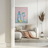 • Etter printing spennes lerretsduken på en kraftig blindramme. For de fleste formatene bruker vi en 40mm tykk ramme, slik at det oppnås en flott dybde-effekt når rammen henges på veggen. Deretter monterer vi på oppheng med stålvaier og kunstverket ditt kan henges rett på vegg.