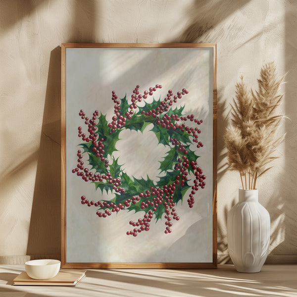 Holly wreath av Rosana Laiz Blursbyai. Kan kjøpes som plakat eller lerret.