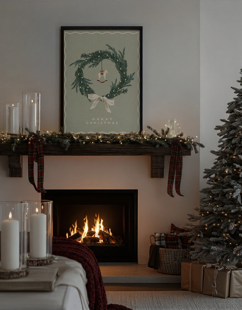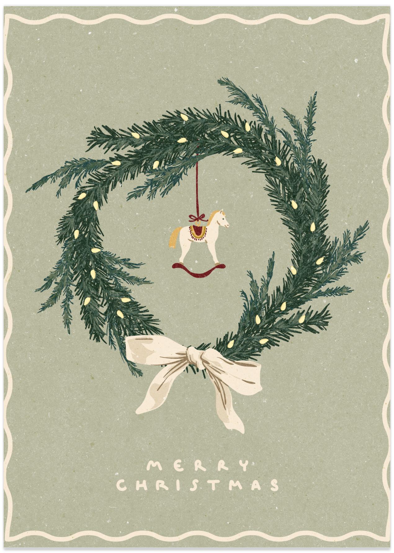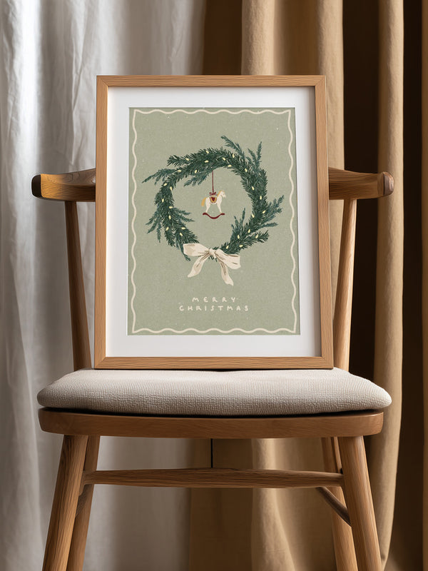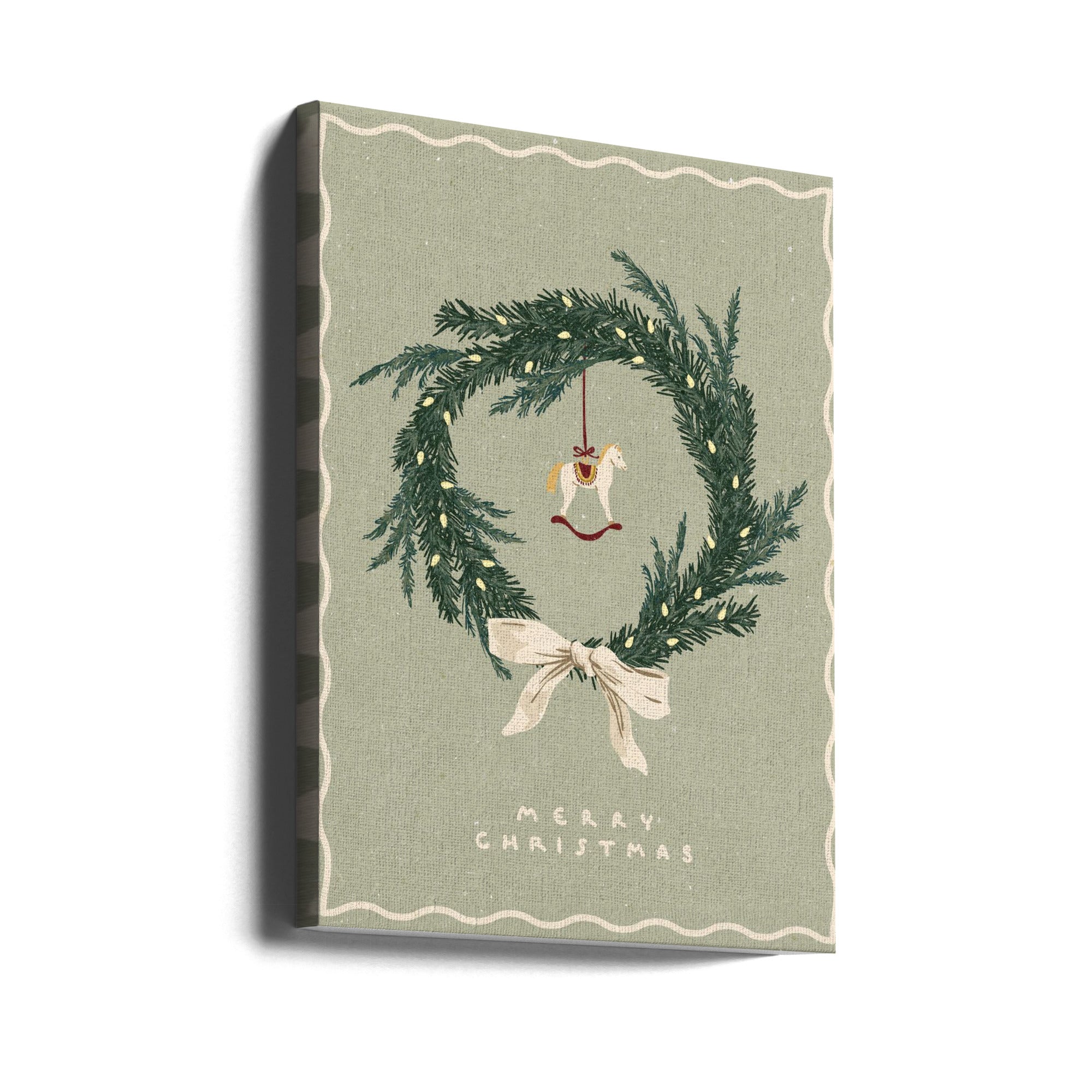 Horses toy on Christmas wreath with bow av NKTN. Kan kjøpes som plakat eller lerret.