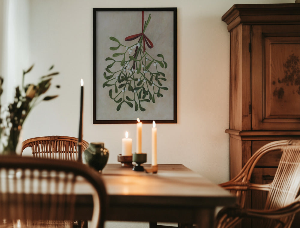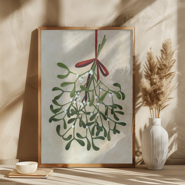 Mistletoe bouquet with bow av Rosana Laiz Blursbyai. Kan kjøpes som plakat eller lerret.
