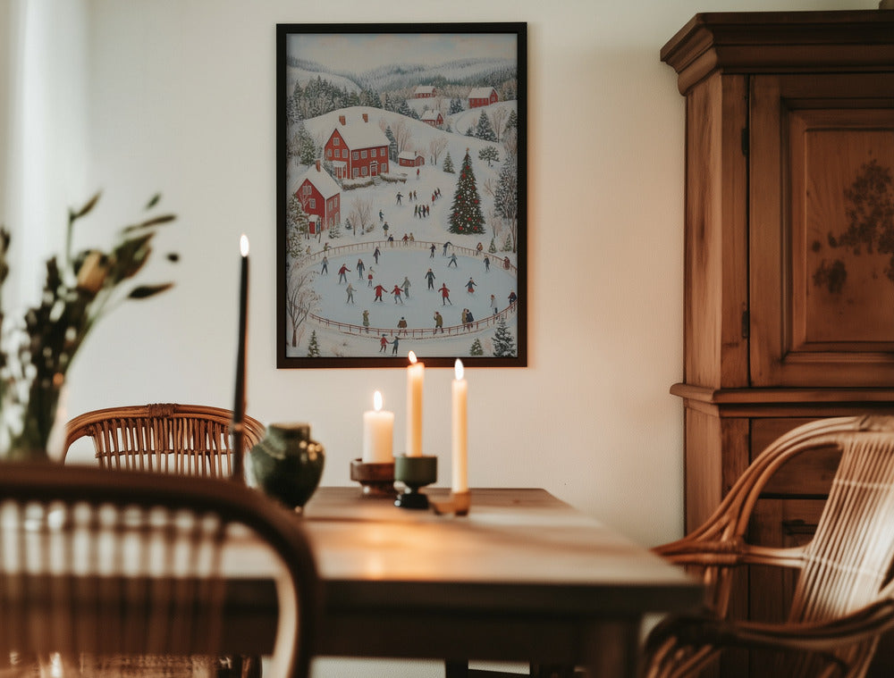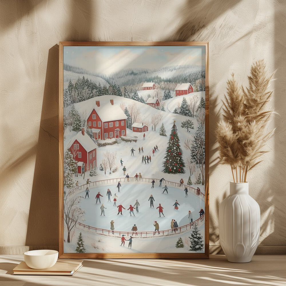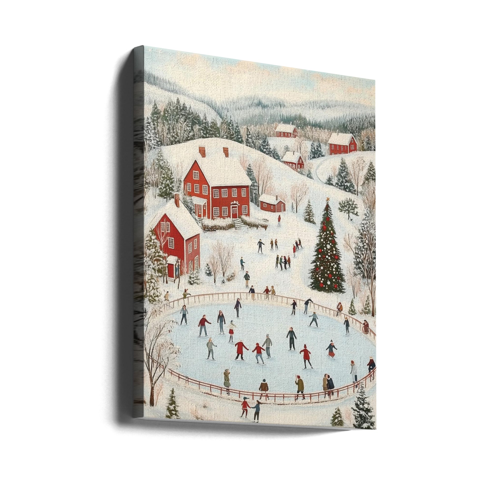 Winter Wonderland Ice Skating Scene av Melloi Art Prints. Kan kjøpes som plakat eller lerret.