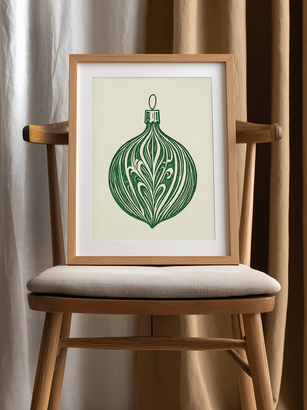 Woodcut Bauble av Pictufy Studio. Kan kjøpes som plakat eller lerret.