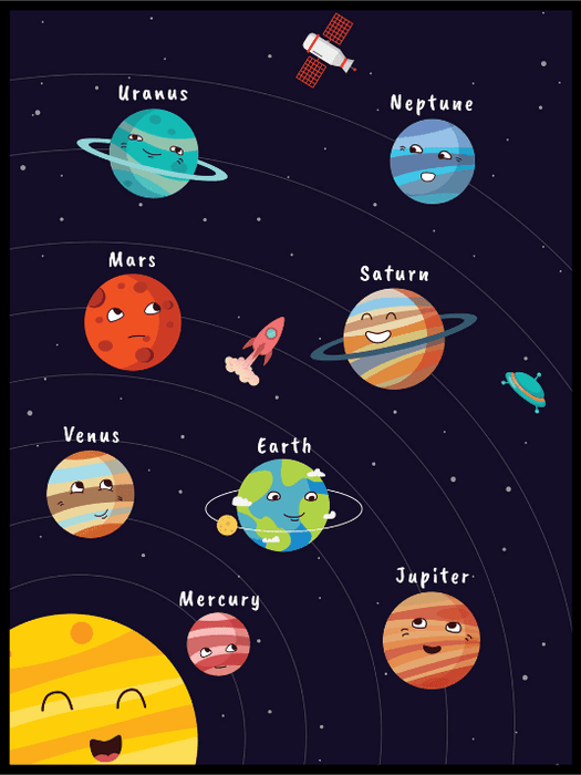Fin og lærerik plakat til barnerommet av solsystemet vårt. Kombiner sammen med våre andre plakater fra verdensrommet for å lage en kul bildevegg på barnerommet.