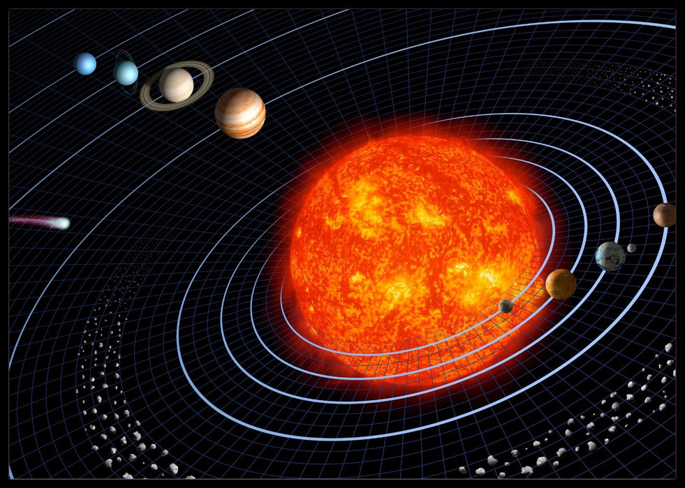 Poster fra vårt solsystem med åtte planeter. Original fra Nasa.