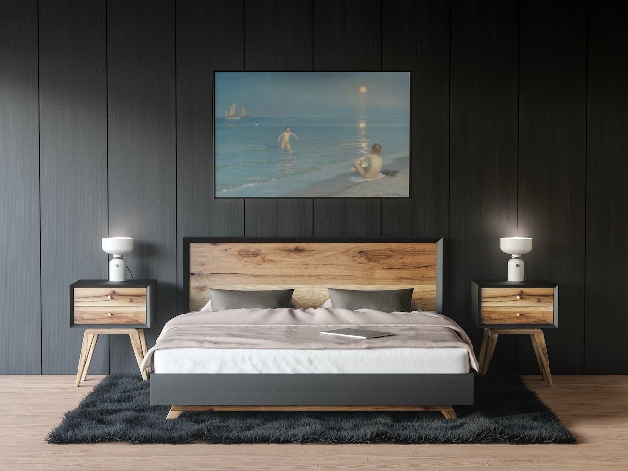 Poster av "Badende drenge en sommeraften ved Skagens strand" fra 1899. Malt av den kjente danske maleren og billedhuggeren Peder Severin Krøyer. Han tilhørte de såkalte "Skagens malerne". Krøyer  ble født i 1851 i Stavanger og døde i Skagen i 1909.