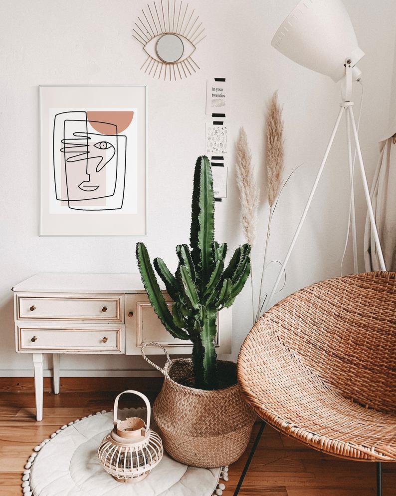 Abstract Face Line Drawing Boho Poster