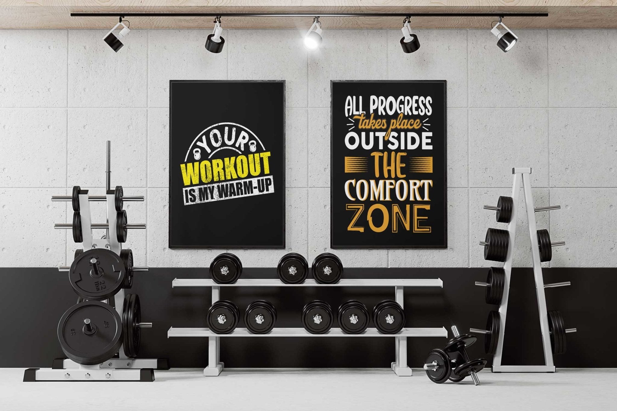 Plakatene våre til trening passer til treningssentre, på hjemmegymmet i kjelleren eller garasjen, eller for deg som driver med trening og fitness og vil style veggen med motivasjonsplakater innenfor trening.