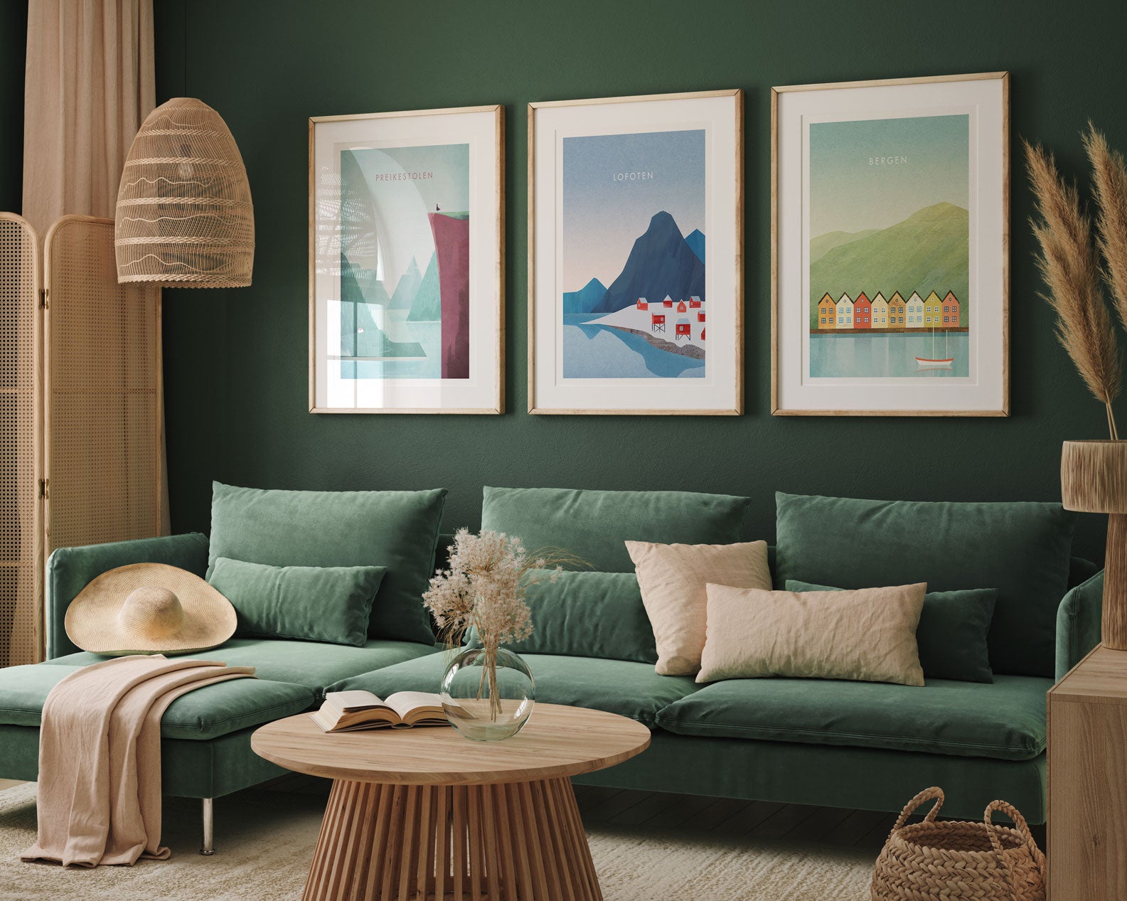 En flott kunstplakat av Bergen som selges i samarbeid med den engelske kunstneren Henry Rivers.