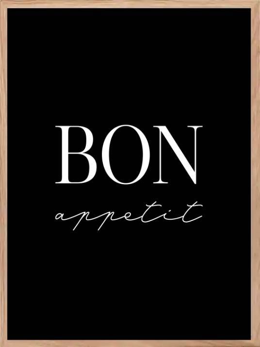 Moderne og minimalistisk plakat til kjøkkenet med teksten "Bon Apptetit".