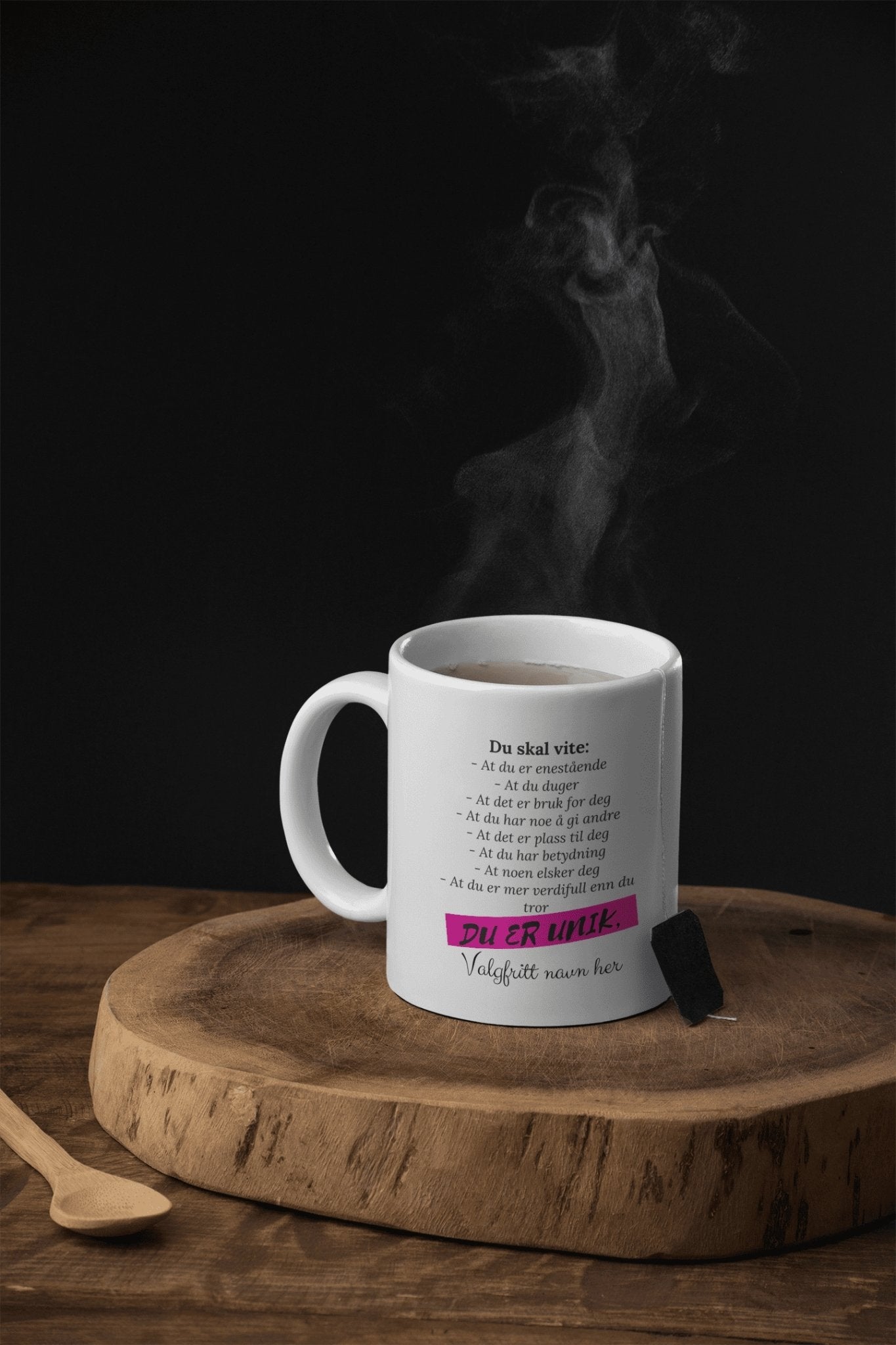 Du er unik - Oppmuntrende kopp med eget navn