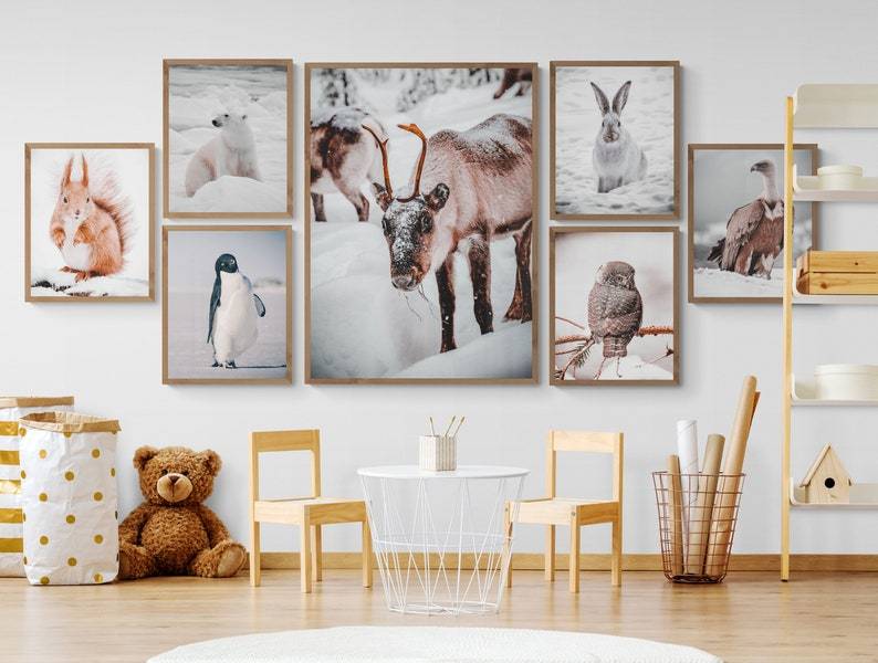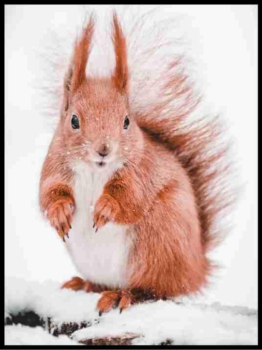 Vinterplakat av ekorn. Denne plakaten passer svært godt på en bildevegg sammen med våre andre vinterplakater.