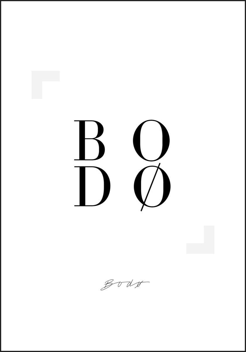 Stilren og tidløst plakatdesign med teksten "BODØ".