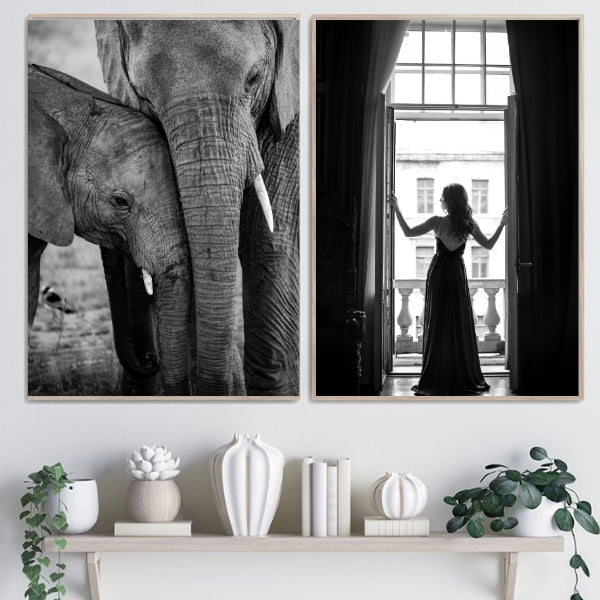 Nydelig plakat i gråtoner av en elefantmor og barn. Denne passer svært godt på en bildevegg sammen med flere motiver.