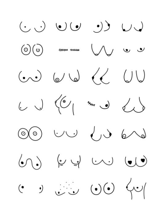 Formålet er å fremheve skjønnheten og det unike. Denne plakaten viser kvinnebryst i forskjellige størrelser og fasonger.
