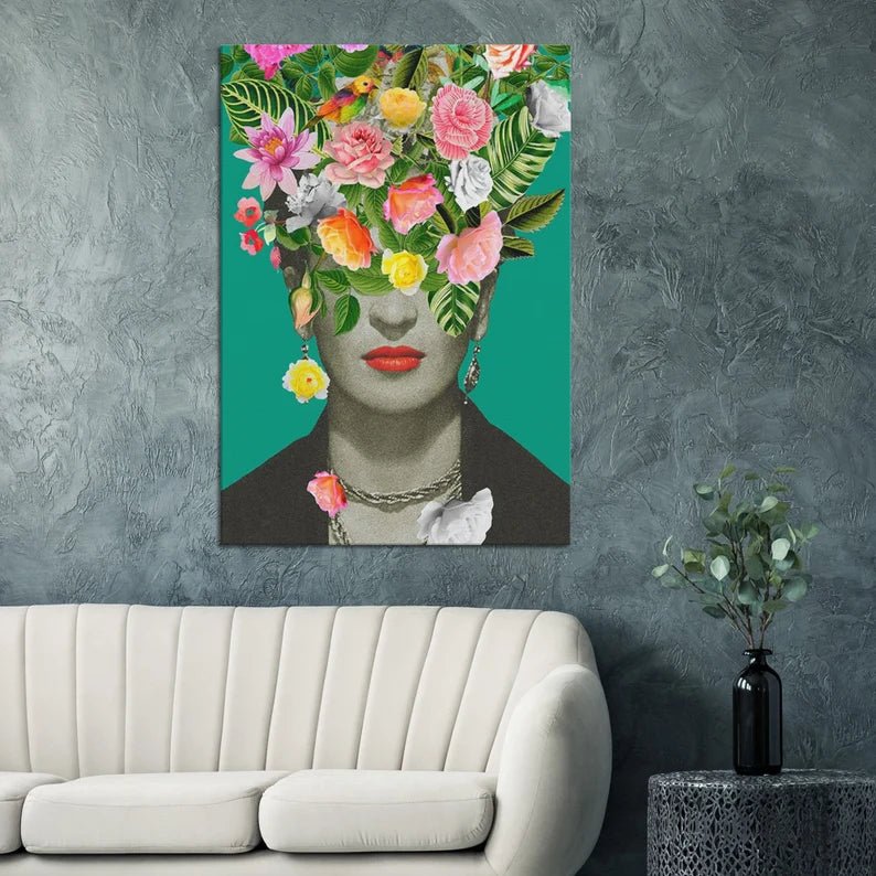 Nydelig fargerikt motiv som illustrerer Frida Kahlo. Dette bildet selges enten som plakat eller lerret og selges i våre største størrelser